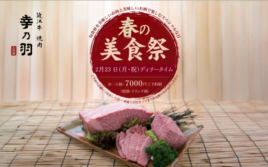 近江牛焼肉 幸乃羽では、『和食料理人秘伝の出汁とろろ』で頂く幸乃羽の「タンしゃぶ」のお披露目を兼ねて『春の美食祭』を特別価格で開催いたします。